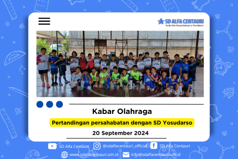 Pertandingan persahabatan futsal antara SD Alfa Centauri dan SD Yosudarso yang berlangsung di Lapangan Futsal pada Jumat siang berjalan dengan penuh semangat dan sportivitas. Meski hanya laga persahabatan, kedua tim menunjukkan performa maksimal di atas lapangan.