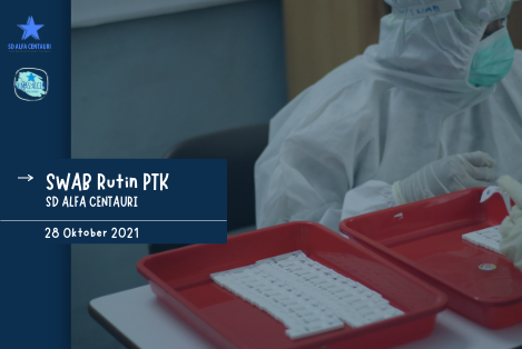 Dalam rangka menjaga diri dan seluruh warga sekolah, SD Alfa Centauri berkomitmen untuk selalu menjaga protokol kesehatan salah satunya dengan melakukan SWAB rutin.