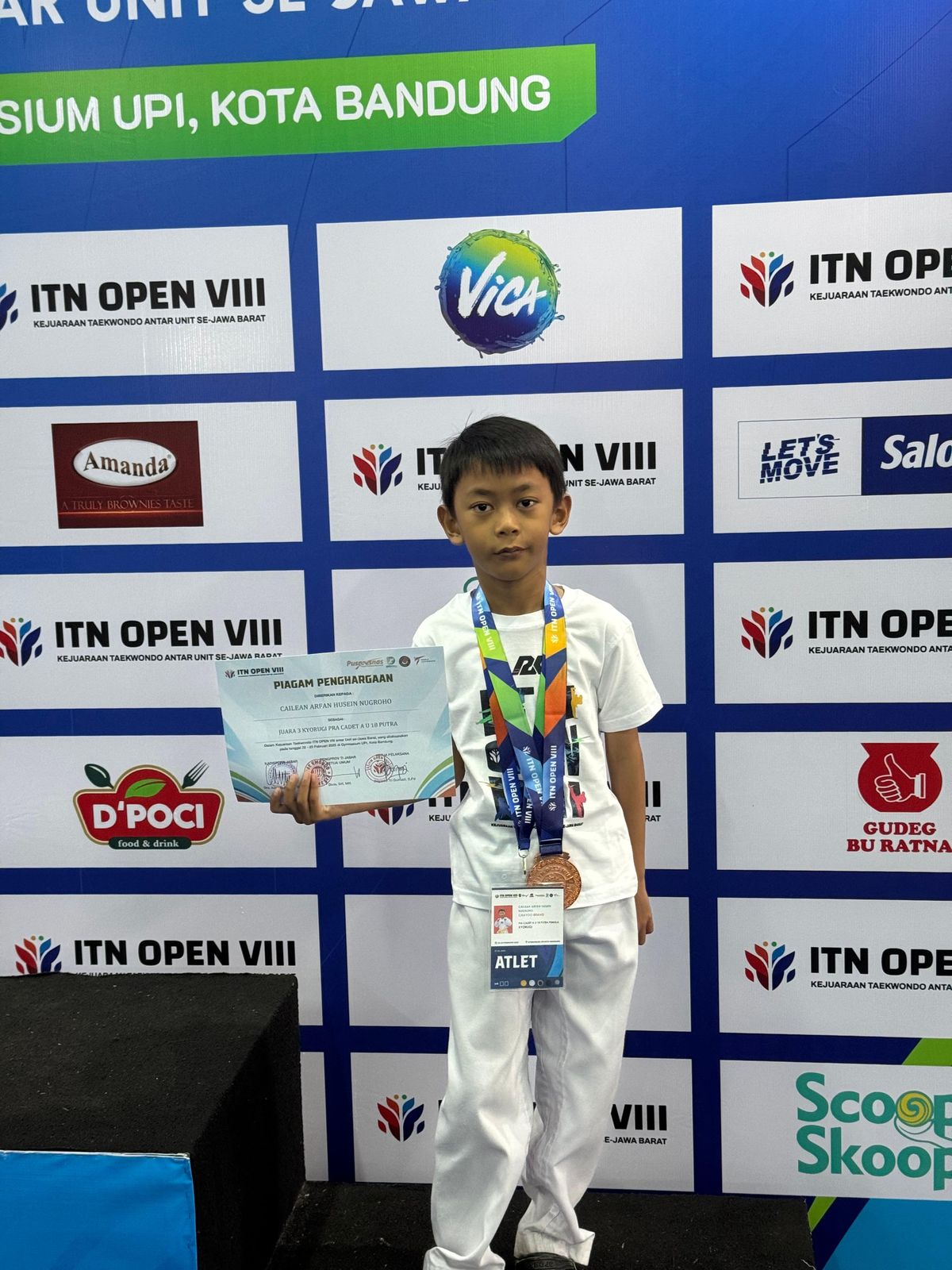 Pada tanggal 22 Februari 2025 Ananda Cailean Arfan Husein Nugroho telah mengikuti lomba Taekwondo yang diselenggarakan oleh ITN ( Institut Taekwondo Nasional) ditingkat Kotamadya . Alhamdulillah Ananda meraih juara 3 kyorugi Pra Cadet A U 10.